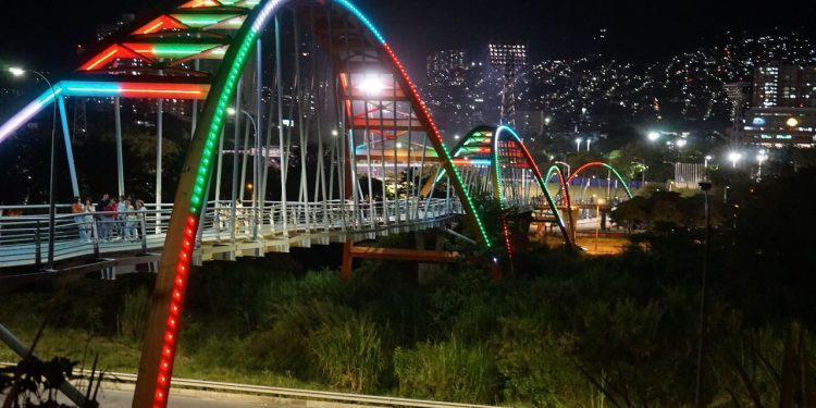 La Alcaldía de Bello invirtió más de 580 millones de pesos en la adecuación de un nuevo sistema de iluminación en el puente peatonal Las Vegas, que conecta la comuna 10 de la ciudad con la Unidad Deportiva Tulio Ospina.