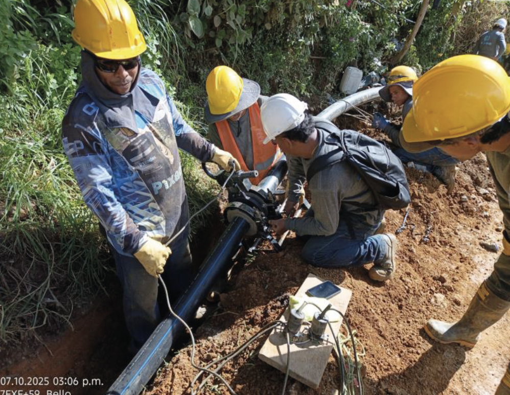 La Alcaldía de Bello informó que avanza en la instalación de un sistema de conexiones seguras para entregar agua en la vereda Granizal, en el marco de una estrategia que realiza en articulación con EPM.