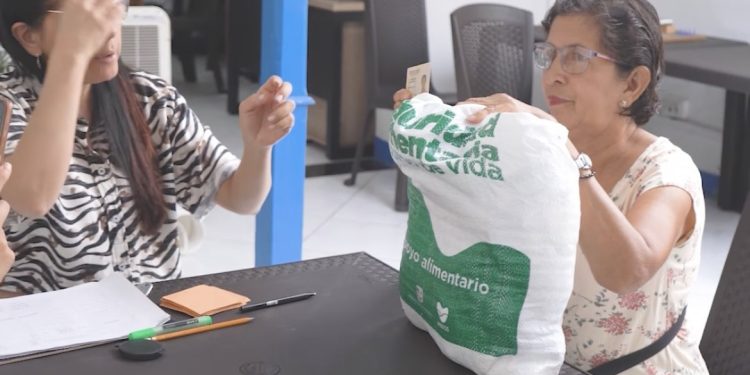 “Desde la Secretaría del Adulto Mayor seguimos creando estrategias para beneficiar a más personas mayores de nuestra ciudad”, expresó Melissa Orrego Eusse, secretaria del Adulto Mayor. La entrega se hace a familias que fueron censadas y que viven en pobreza extrema y presentan un bajo nivel nutricional.